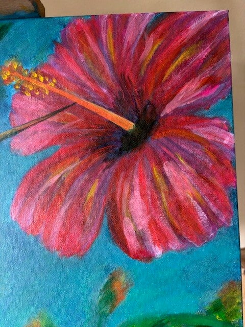 This painting brings a touch of tropical summer into any room and would look beautiful in a bright living room, a child's bedroom, or a creative workspace.